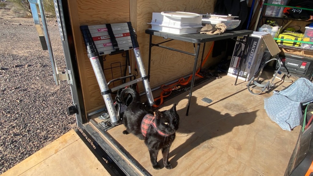 Part of the reason this snuck up on me is that I’m leaving Quartzsite unusually early, specifically to go to the campout in Florida. This is fine, but I’m glad didn’t realize this any later. Since Amazon seems to take about two weeks to deliver anything here, this means I’m done making orders. I have a couple of things still out there, which I’ll wait for. But then, I’m free to go.