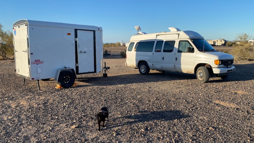 Then it’s just a matter of emptying the grey water and toilet tanks, filling up my water, hitching up the trailer, and I’m ready to go. I’ll do all that today so I can just roll out of here in the morning. I have lunch plans in Phoenix and plan to get to Tucson, which will be the farthest east I’ve ever been in Arizona. I may be a legal resident, but there’s a lot of this state I haven’t seen. I’ll be sticking to the south part where it’s warmest on this journey.