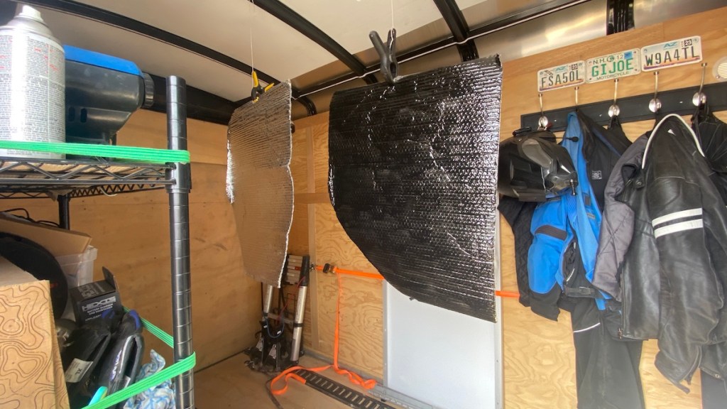I painted my “new” window covers I made a while back to replace the ones that were falling apart. While camping in Quartzsite stealth was completely unnecessary, but now that I’m about to get back on the road, it’s nice to blend in if I have to. It’s been so windy that I ended up turning my trailer into a paint booth, the only way I could get out of the wind to complete this job.