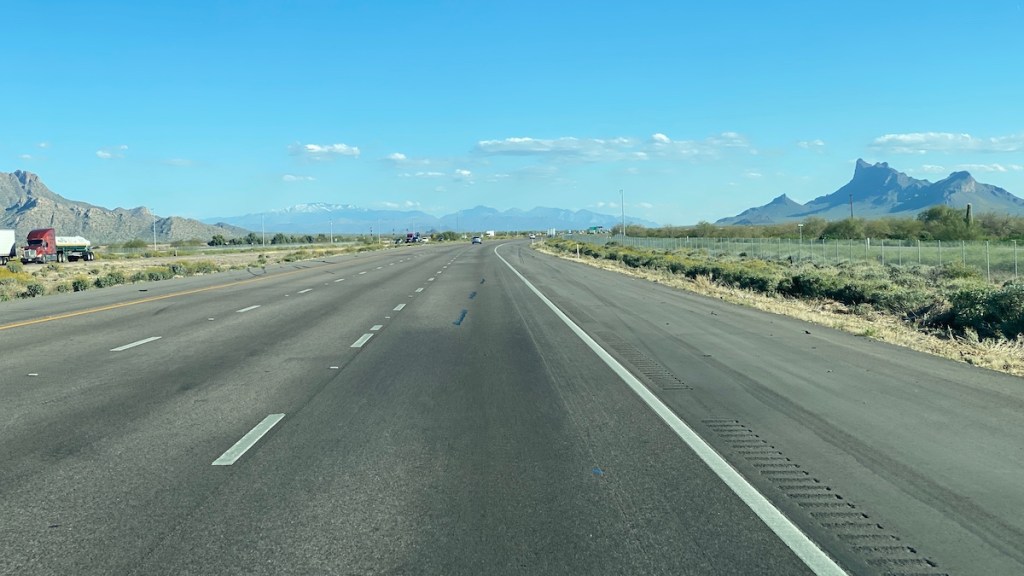 After I was forced west to go east because I-10 was completely closed, I continued on toward Tucson. At this point, I was officially back in unknown territory, boldly going where I have not gone before. But I recognized Picacho Peak as I approached, having seen many videos with it in the background. There’s a state park right there, but also free BLM camping nearby. It’ll be worth checking out more closely at some point.