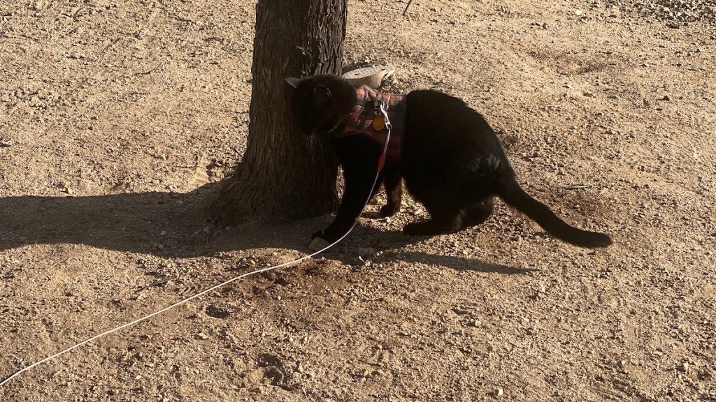As I rolled into Tucson around 4:00 pm, I went to Crossroads at Silverbell District Park. Lister traveled extremely well today, but during the last stop or two, he got antsy to go out. I gave him the opportunity to roam and explore a bit before heading to our overnight stop. He seemed to appreciate not only the chance to stretch his legs, but also explore a brand new place. Eventually, though, his 5:00 pm desire for dinner took over, so I fed him, then moved on.