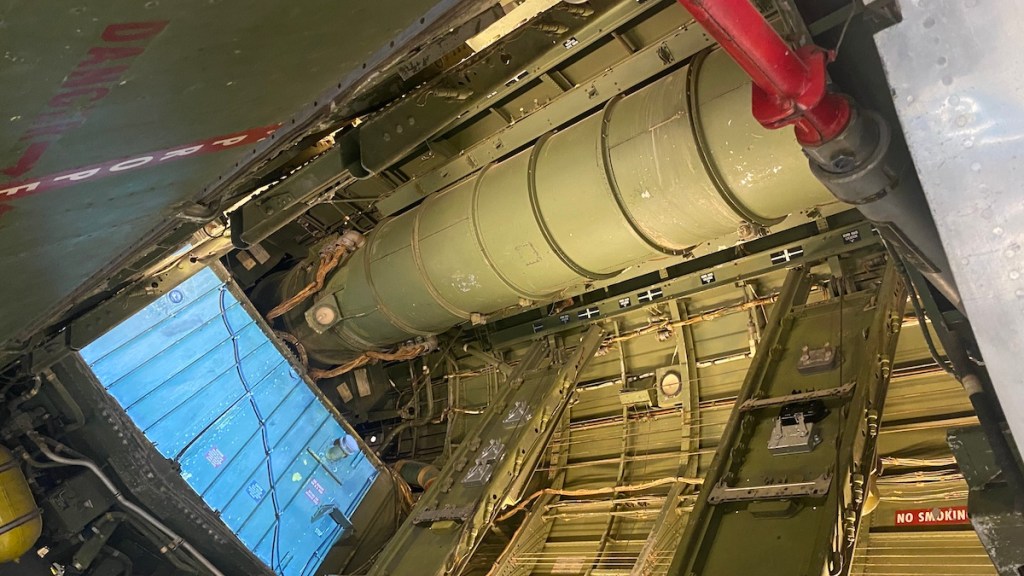 You can’t go inside most of the aircraft, but one exception is this B-17 Flying Fortress. You can stick your head up into the bomb bay, climb a ladder to look into the cockpit, and duck into some of the other gunner positions from the outside. I’ve only ever had this experience once before, in a B-24 Liberator at the Canadian Air and Space Museum in Ottawa. This look inside the more well-known B-17 was even better.