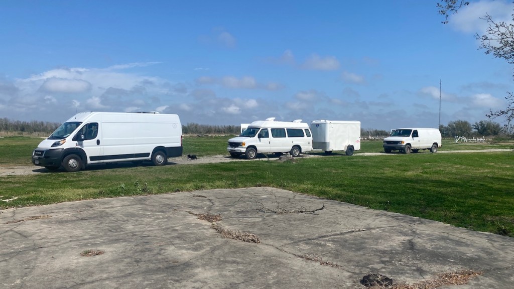 We did, however, have a pleasant lunch stop along here. I’m not sure if this was one of many abandoned pieces of property or associated with a nearby pipeline operation, but there was a short gravel loop that was perfect for us to pull in and stop without me having to turn around with the trailer. I don’t like driving into places I’m not sure I can get out of. Even better, our vans made excellent wind blocks, so our lunches didn’t get blown away. The critters all got to get out and explore a bit, too.