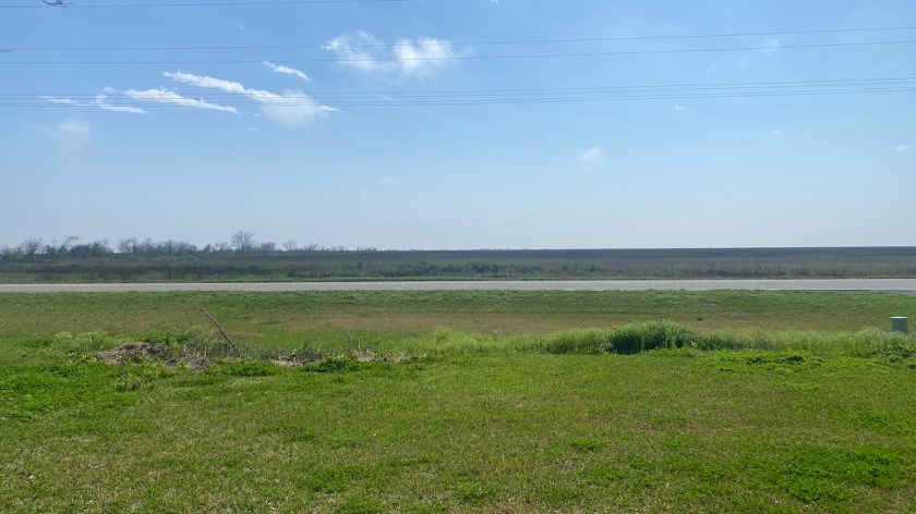 We drove as close to the coast as we could between Creole and Pecan Island. We couldn’t see the water from there, but we got the full effect of the wind off the Gulf of Mexico, blowing us all over the road. This was a relatively nice day, yet there were endless signs of past hurricane destruction — houses with missing roofs, sides torn off of them, or completely collapsed. I haven’t seen so many campers and RVs in one place since leaving Quartzsite. Residents must be living in them while their houses get rebuilt — or not. Birgit drove through this area two years ago and said it’s much better now than it was then. It’s not as messy, and though there are plenty of fallen-down houses, others are all fixed up and in good shape. That wasn’t the case back then.