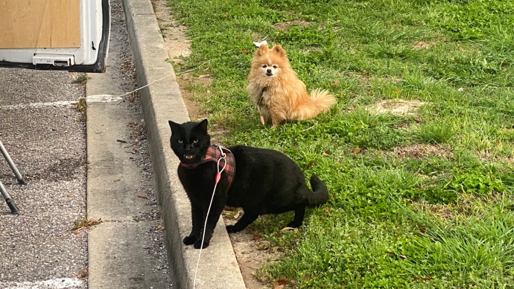 I didn’t take any pictures at this overnight stop. If you’ve seen one Walmart, you’ve seen them all. But this picture of Lister and Chase was super cute, and proof that Lister can actually get along with dogs now — as long as they know their place.