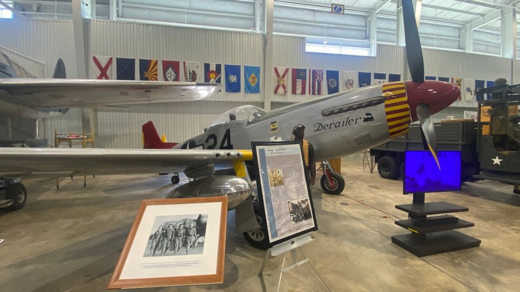 That’s not all the park had, though. You drive right past a B-52 on the way to the parking lot. It’s no Pima Air and Space Museum, but there are plenty of land, air, and sea military vehicles to check out. I was particularly impressed to see this display of a P-51 Mustang of the Tuskegee Airmen, the first African American fighter pilots. Racism was alive and well during World War II, but these pilots proved themselves to be among the best in the air. White bomber pilots would eventually become happy to see their distinctive red-tailed P-51s escorting them, knowing they were in good hands. Seeing a display like this in the south makes it even better.