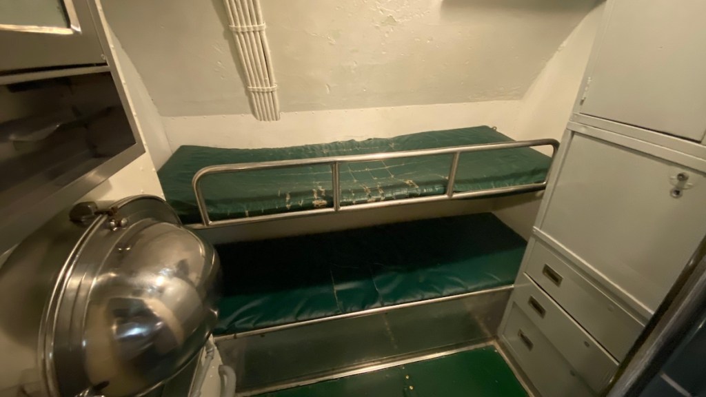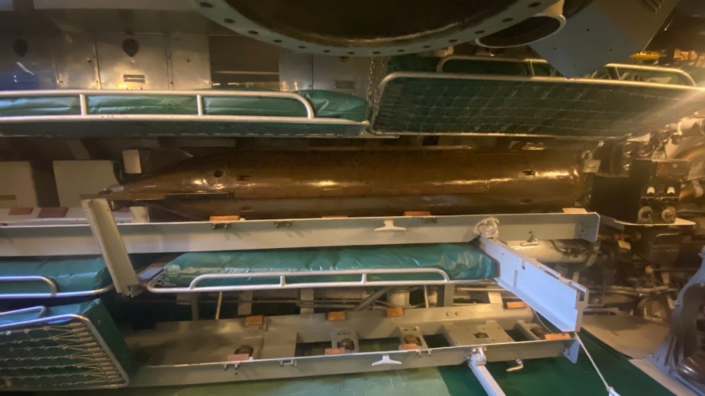 Space is at an absolute premium on a submarine. Every inch of space is used, often for multiple purposes. For instance, there are bunks in the aft torpedo room. Can you imagine sharing your sleeping space with torpedoes? Aside from the weaponry, though, it’s kind of like living in a van. You use every bit of the small space you have, often for multiple purposes.