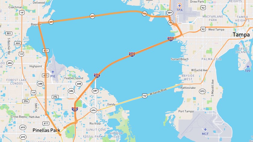 First, it sent me straight into terrible traffic on I-4. I wished I was in California so I could lane-split my way through it, but that’s not legal in Florida, so I behaved myself. Finally, I got to the Wawa where the route began, and it took me right back across the I-275 bridge I’d just crossed to get there. And then the app crashed in the middle of the bridge, leaving me with absolutely no idea where I was supposed to go. Due to another bug in the app, I couldn’t restart it through my CarPlay unit and had to log in on my phone, stashed away in my tank bag. I gave up on following the route at this point and chalked this up as a huge fail for the REVER app.