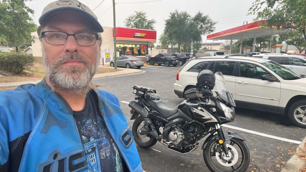 Yesterday was another motorcycle day. I’ve known and worked with The Badgers and Support Bikers for several years. I helped less than I’d planned to with their World Record Poker Run in 2021, mainly due to the fire and beginning my life on the road, but I still chipped in and wrote stuff for them from time to time. Right now I’m helping plan their Route 66 Passport Run for this July since I have recent intel from my own Route 66 journey. Now that I’m spending an extended stay in Florida, where they live, we had to meet up for the first time in real life at some point.