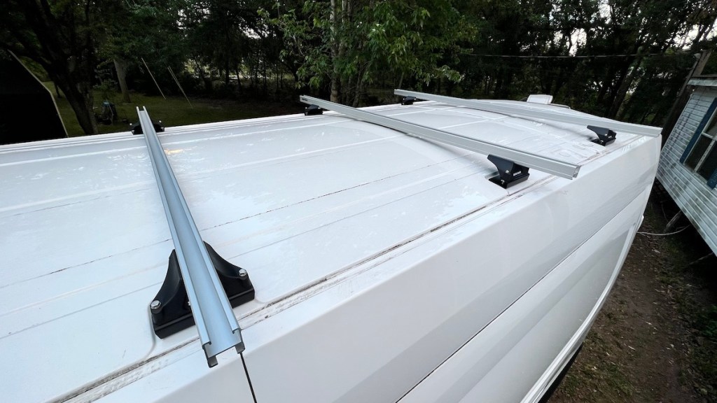 When the temperature dropped last night, I took a bike ride to a nearby Ace Hardware, found some longer stainless steel bolts than Home Depot had, and they worked. My roof racks are on, and they’re solid. I can grab any of them and shake the entire van. Unfortunately, I got the wrong hardware to slide into the channels to get bolts sticking up to mount my solar panels, so that will have to wait until I get the right parts. That mistake is on me. I’m going back and forth with eTrailer right now about my missing end caps (it turns out four out of six fell out of the boxes during shipping), and they’re also the cheapest place I found to get this hardware as well, so maybe I can order the bolts and have them include the end caps in the same order.