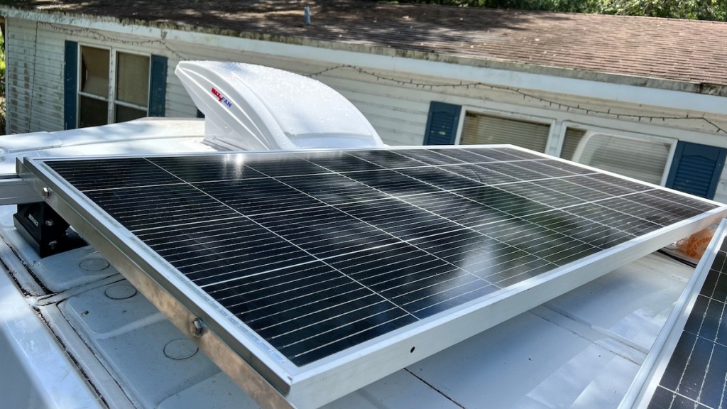 Immediately I got 500 watts of power out of my 600 watts of solar panels! That’s quite good, especially considering that it’s April and another two months until the sun is as high as it gets in the sky. Even with 550 watts of solar hooked up to my old van this past winter, I never got much more than 300 watts of charging at most. Rigid panels are more efficient than the flexible ones I had on my old van’s roof, so it’s possible I may not need a fourth panel in the future. I’m all set up to add one if I need it, though.