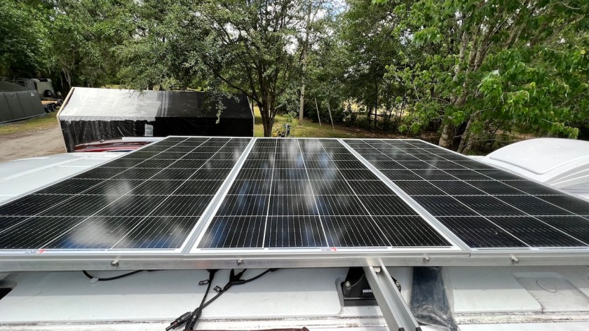 Immediately I got 500 watts of power out of my 600 watts of solar panels! That’s quite good, especially considering that it’s April and another two months until the sun is as high as it gets in the sky. Even with 550 watts of solar hooked up to my old van this past winter, I never got much more than 300 watts of charging at most. Rigid panels are more efficient than the flexible ones I had on my old van’s roof, so it’s possible I may not need a fourth panel in the future. I’m all set up to add one if I need it, though.