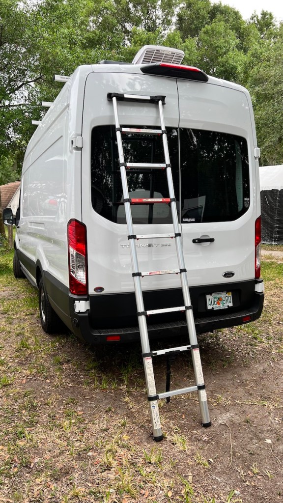 The same goes for my Starlink setup. The Transit’s roof is too tall for me to stand on the back bumper and toss it up there. My portable ladder isn’t tall enough to clear the roof, but it is tall enough to let me reach the antenna base. I’ve thought about bolting/clamping a ladder to the back door, but haven’t yet. Now that I know this idea will work at least for now, I decided to duplicate my Starlink antenna roof mount on Smokey II.