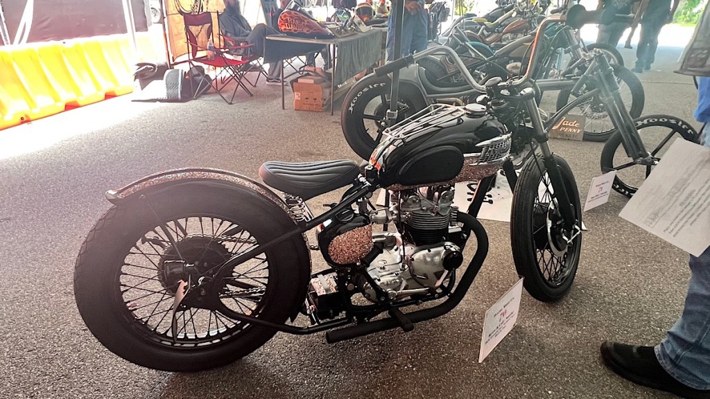 Weems Motor Co. was there with a couple of his amazing custom jobs. I had a couple of beers with him by chance at the Dirty Shame during my last Florida visit. While he had one of his bikes on display, he was here to show off this creation that his daughter made. Yes, it’s definitely a girl’s bike, but the craftsmanship (craftswomanship?) is there, on par with anything else on display there. She had a good teacher.