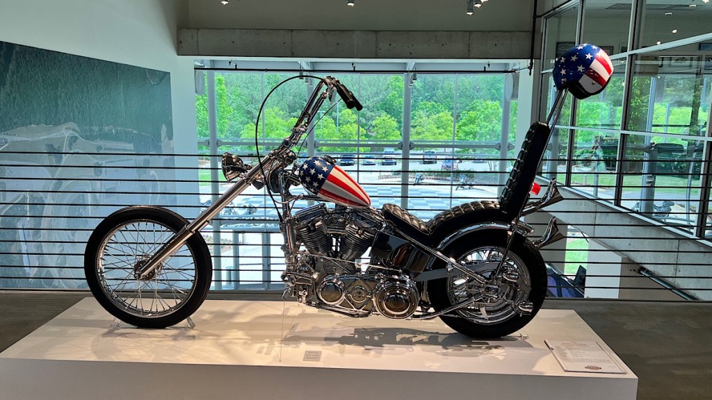 Anyone who’s seen the movie Easy Rider will immediately recognize this bike. It’s not the actual bike from the movie, because neither of the original two still exist. One was destroyed during filming, and the other dismantled before the movie became the cult classic it is today. But this is an amazingly accurate recreation of it.