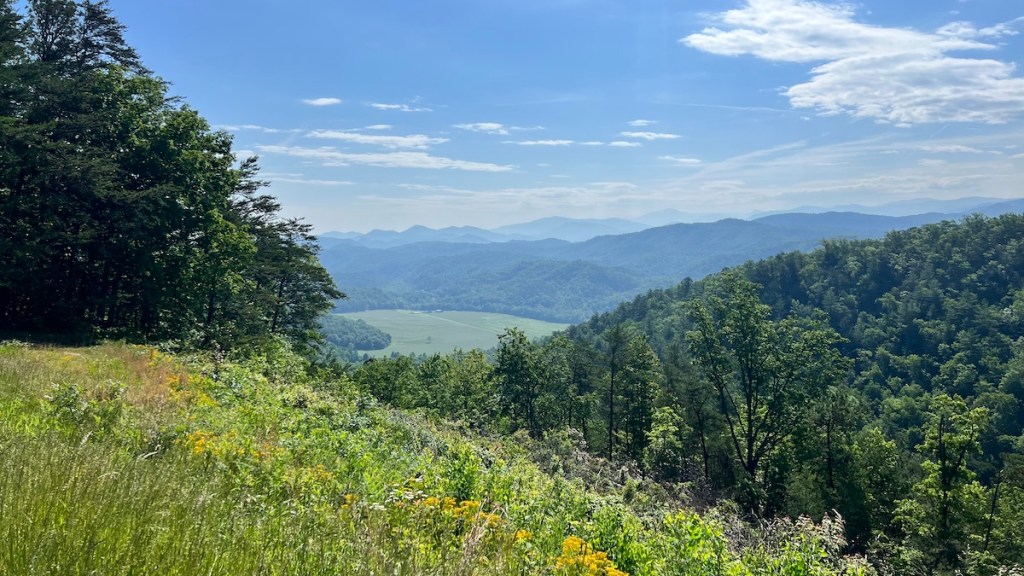 The next morning, I made my way out to US 411, and actually spent an hour or so on long, straight highways. This was a means to an end so I could ride part of the Foothills Parkway. The story goes that Tennessee was disappointed that the Blue Ridge Parkway didn’t extend into the state, so they went to the federal government to get a similar parkway of their own. The Foothills Parkway is the result. Unlike the more famous Blue Ridge, it’s severely lacking in funding, to the point where even now, 75 years after it was approved, construction still isn’t complete, even though the National Park Service already owns all the land it needs.