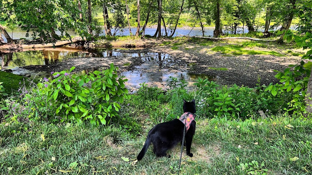 Finally, I pulled into a small town gas station — the only place I could actually stop moving without blocking the entire road — and got my Garmin sorted out with a hard reboot. It picked up satellites and got me a route back to the highway, which at this point was all I wanted to see. Slowly, the road got better, and eventually wide enough for two cars to pass without off-reading. I pulled into the town of Covington, and stopped at another boat ramp. It was after lunchtime by now because there’d been nowhere to stop for the past hour and a half, so I had some lunch and took Lister for a walk. This brought down my stress level quite a bit. With scenery like this, how could it not?