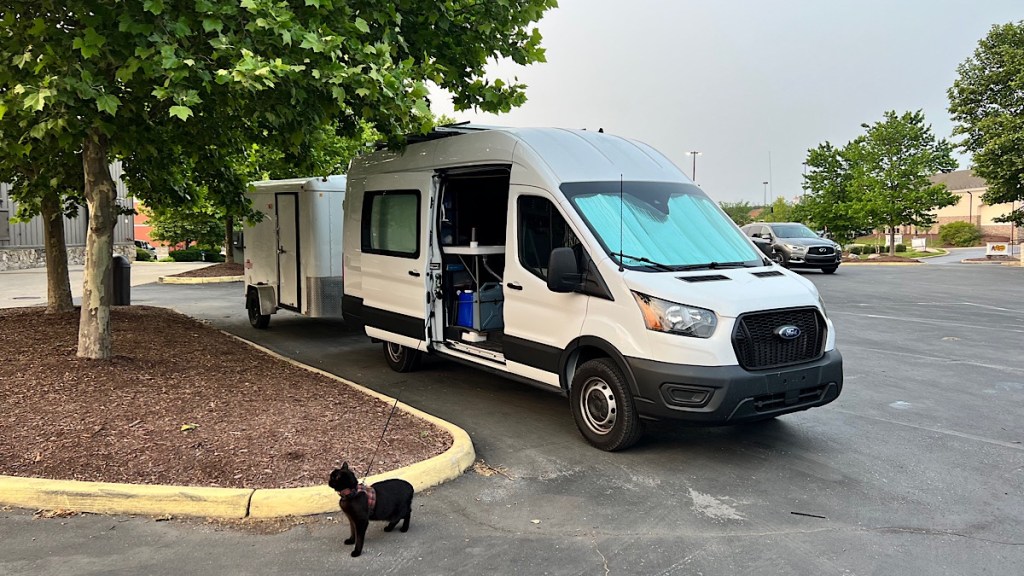 What a wacky adventure today was. It was like driving first on go-kart track, then the Talladega 500. My van isn’t exactly made for either of these conditions. But it handled it well enough, and all is well. I need to find roads that are in between the two that I drove today, open enough for my van and trailer to fit, but quieter than NASCAR race of the interstate. I think I have such a route figured out for tomorrow.
