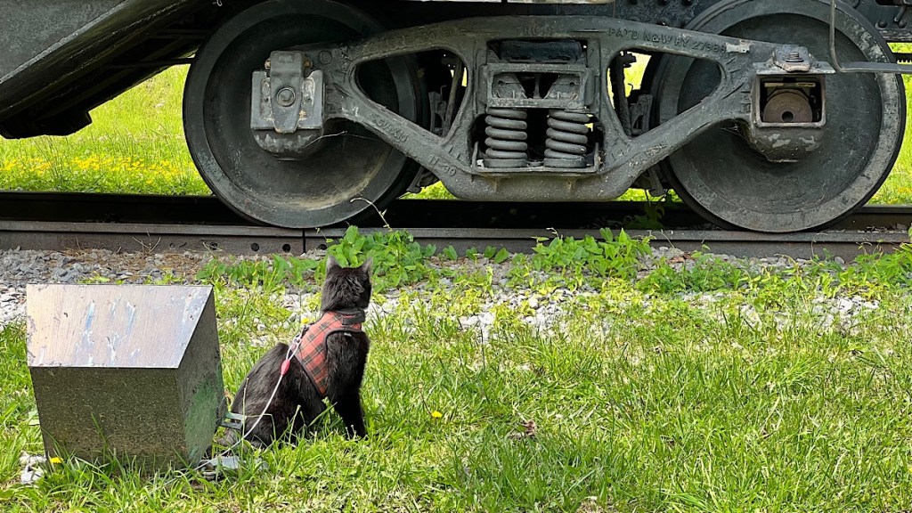 After my exciting laundry stop, I found a nearby park in Bluefield, Virginia. Lister was getting antsy, and I wanted to let him roam around a bit. I had no idea there was a steam locomotive and caboose here, but it was a pleasant bonus. I love such things. Lister was fascinated, too.