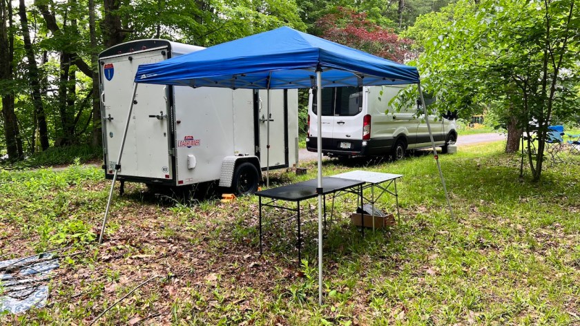 I’ve started making progress on dealing with my stuff from storage. Ally loaned me her pop-up tent, which I’ve set up next to the trailer. I moved my camp tables under it, and now I have a place to work on going through my stuff out of the rain. Naturally, it hasn’t rained since I set it up.