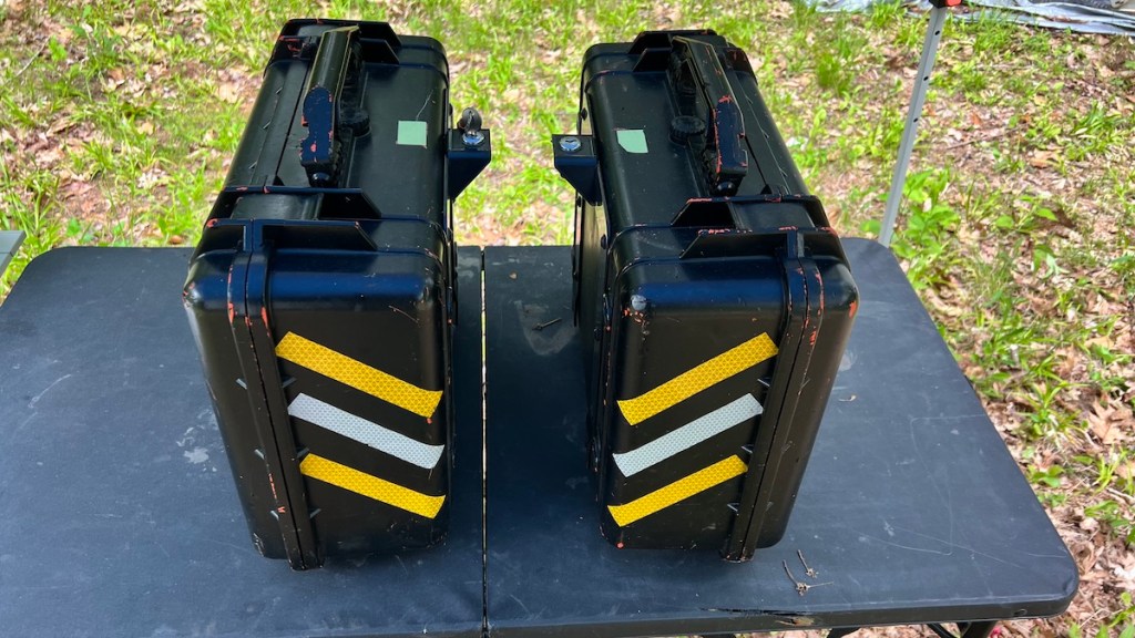 I seem to have collected a great deal of motorcycle luggage over the years. I’ve had this tank bag since soon after I started riding many moons ago. I don’t need it because the V-Strom came with a better tank bag for my current needs. I found a tool bag that bolts to the front of a KLR650. It came with mine, which I don’t own anymore. And, of course, the hard cases that Kate gave me that I’ve been wanting to test fit on my V-Strom are still there. Luggage takes up a lot of space, so I took a bunch of pictures so I can post them online for low prices to make them go away. While I’d been planning to use the hard cases on my V-Strom, I’m concerned that they’re too wide for me to get around them when the bike is inside the trailer. I don’t really need hard cases for the casual riding I’m doing, rather than the serious motorcycle touring that these are made for. I think I’ll pick up some simple soft luggage instead for those small grocery runs into town.