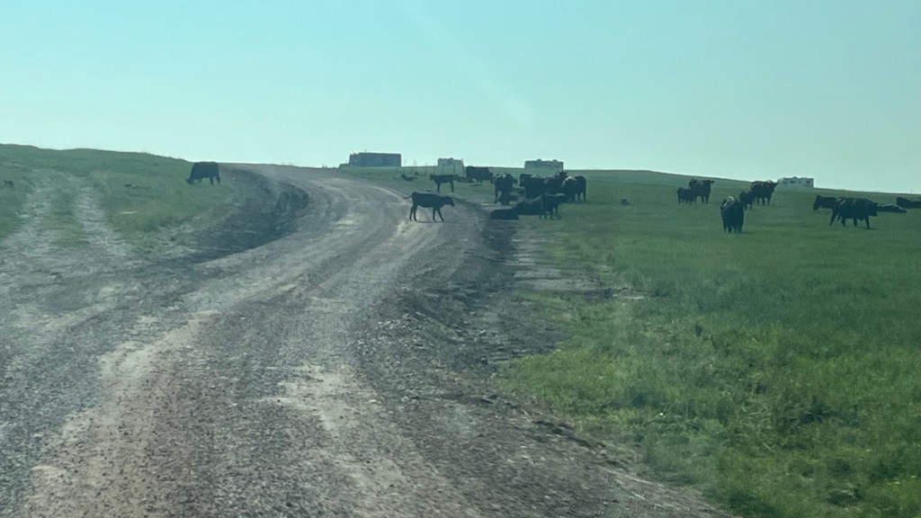 Maddi left the Wall Drug parking lot around 9:00 am to return to the boondocking area and find a new camp. I packed up and followed soon after. I had to drive through a herd of cattle to get there.