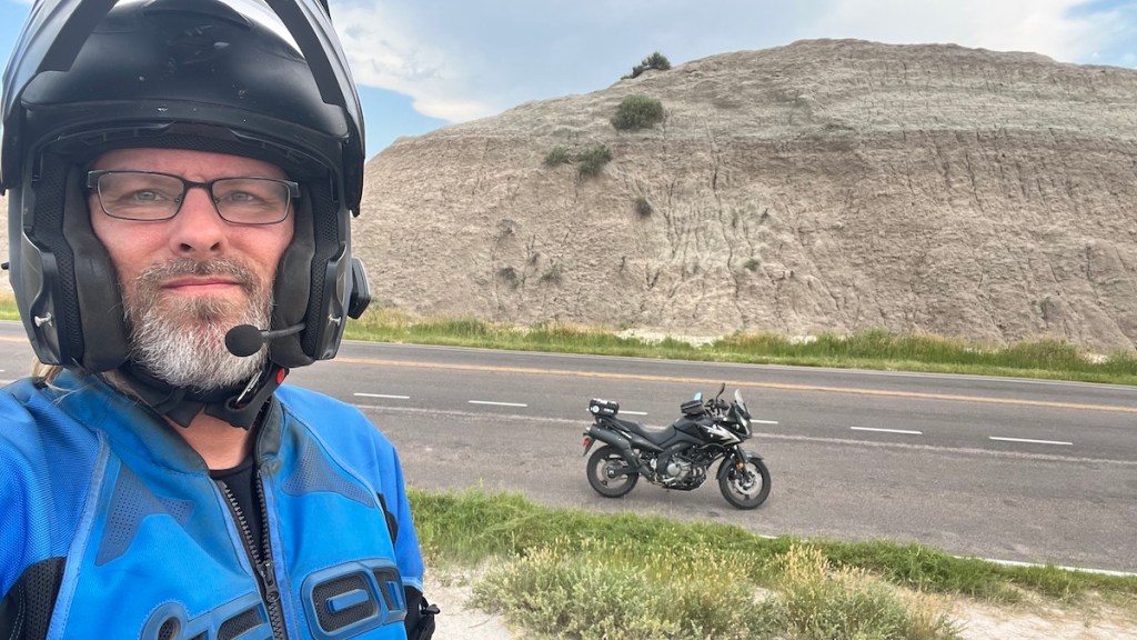 I spent my morning working and fighting a new big technological problem. I’ll get into several of these issues in my next post, since I want to focus on the positive in this one: a motorcycle ride through Badlands National Park.