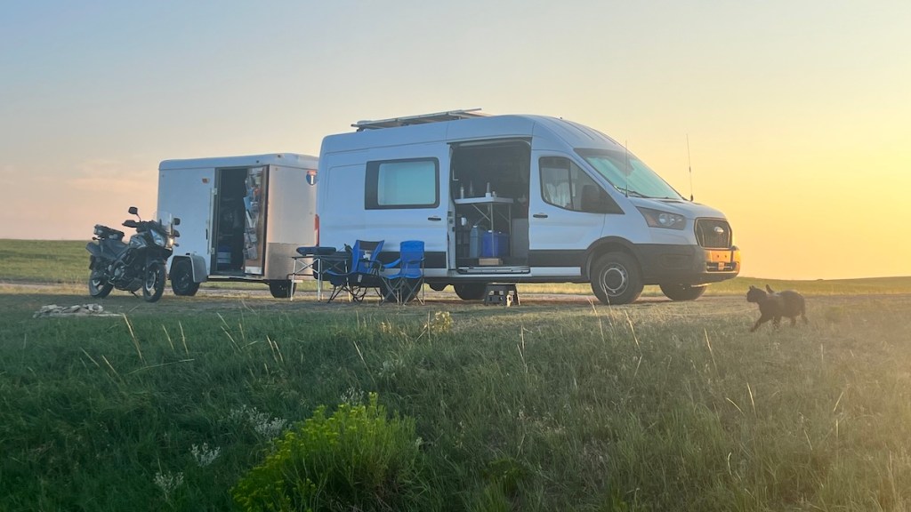It was a quiet night until a few more pop-up thunderstorms rolled through. I’d left my bike, stove, and camp chairs outside, but nothing that couldn’t get wet, so I didn’t worry about bringing stuff inside. Everything was fine in the morning, except for my latest technological problem. That’s a story for next time.