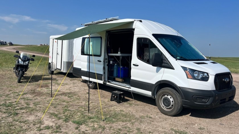 It was a quiet night until a few more pop-up thunderstorms rolled through. I’d left my bike, stove, and camp chairs outside, but nothing that couldn’t get wet, so I didn’t worry about bringing stuff inside. Everything was fine in the morning, except for my latest technological problem. That’s a story for next time.