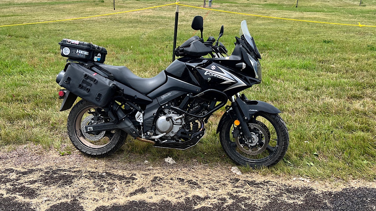 I met several YouTubers I know, either personally or just from their videos, at the rider’s meeting. Jess, a.k.a. Her Two Wheels, wanted to know how the “easy” route was. Amanda Zito was there with her brother, Gary, who also rides a V-Strom. I had a good chat with Spite, and met Jake the Garden Snake, who I’ve followed for years. I’m beyond getting star-struck. I just enjoy meeting people whose work I enjoy. Dinner was quite tasty, and then I returned to camp to give Lister some outside time.