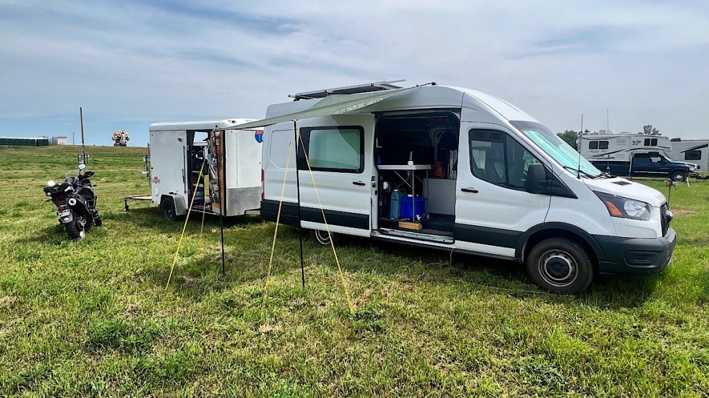 I got chatting with my new neighbor a bit. Among other things, it turns out we’re both interested in trying tomorrow’s easy route, which says nothing about any challenging sections the way today’s route did. It’s 171 miles long and is supposed to take five hours, but tomorrow’s high temperatures are supposed to barely hit 80, so Lister will be fine inside the van as long as I leave it well ventilated. The event makes it easy to meet people who want to ride the same route as you and form groups, but it looks like I’ve already found a riding buddy in my next-door neighbor. He’s on a full-size BMW GS of some kind, so it’s not like I’ll be trying to keep up with people on street-legal dirt bikes.