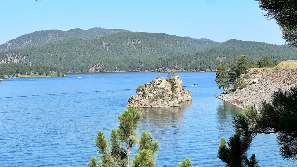 The ride south was fast and not too exciting, but US 385 is pretty much the way to get there. I recognized Pactola Lake from my previous visit, and since I was in the lead, I pulled in so Dean could take it all in. I needed a water break anyway, and took some pictures. Rever crashed mid-ride, as usual, but between my Apple CarPlay unit never losing power and also having cell service, I was able to get the route back this time.
