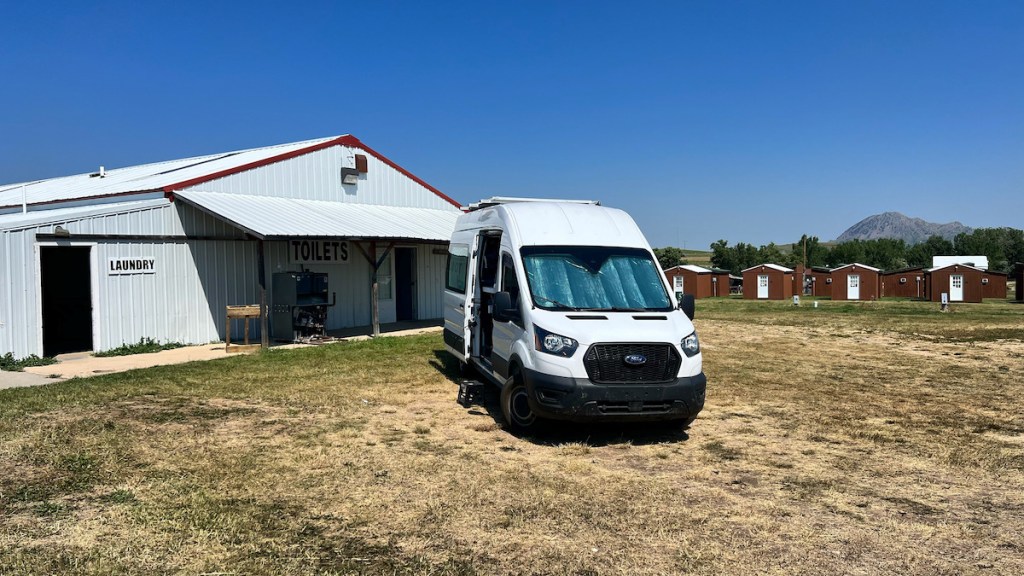 Red Shale Campground is a free campground in Custer National Forest near the town of Ashland. The website says there’s a 10-day limit, but the sign at the entrance says 16 days, neither of which is the standard 14-day limit. It doesn’t matter, because I won’t even be here for 10 days. But I do intend to stay for at least a few days, and certainly through the rest of this heat wave. The trees will help keep the sun off my van, except for a few hours of direct sunlight around noon to give my solar panels a quick blast to keep my batteries charged. Starlink won’t work here, but it isn’t working anyway right now, and both of my cellular hotspots do. Lister gets to wander around outside, without me taking off on long motorcycle rides like I had been the past few days. While I grabbed a map that shows plenty of forest service roads in the area, I’m not locking him in the van in this heat. The one thing I may do is take the bike to Ashland for groceries if I need to, which I can do in the morning before it gets hot.