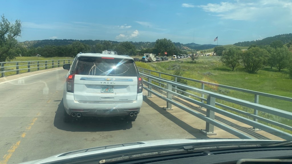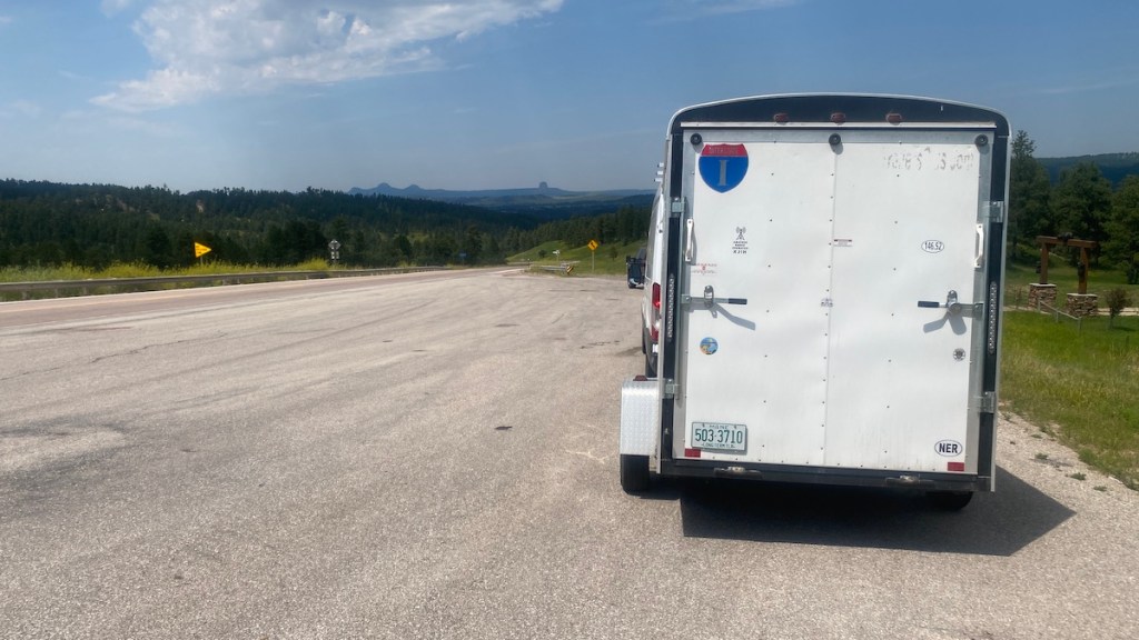 I’d just bought my annual park pass, so since it was already paid for and I wasn’t on a tight schedule I detoured into Devil’s Tower National Monument. While the big rock itself is quite impressive and well worth my side trip, the park itself didn’t work well for me. Since I have a trailer, I was forced to park in a long vehicle area two miles away from the visitor’s center. From there, I would’ve had to either detach the trailer and take the van the rest of the way, or unload the motorcycle, then strap it down again afterward.