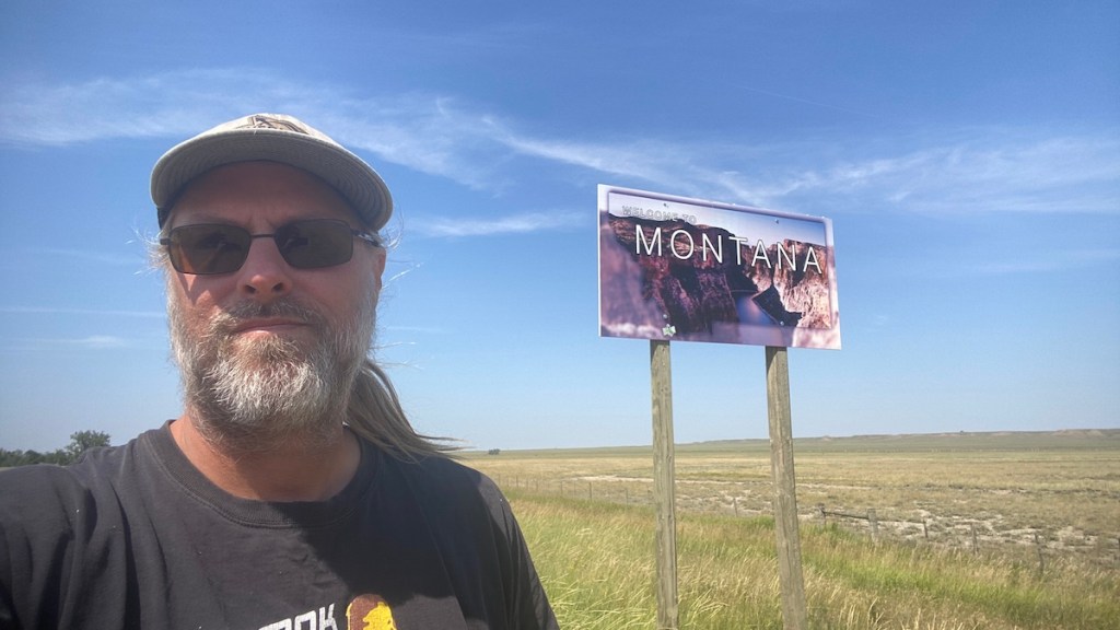 Before long, I was in Montana, another new state for me. This will also be my last new state on the Big Loop. The next one is Idaho, which I visited last year along with the other western states. While I haven’t entered previously traveled territory yet, as far as the map is concerned I’ve connected the Big Loop together at this point. I have now at least passed through 43 of the lower 48 states. (The 13 miles of Route 66 through Kansas hardly count as a quality visit, but I’ve been there!)