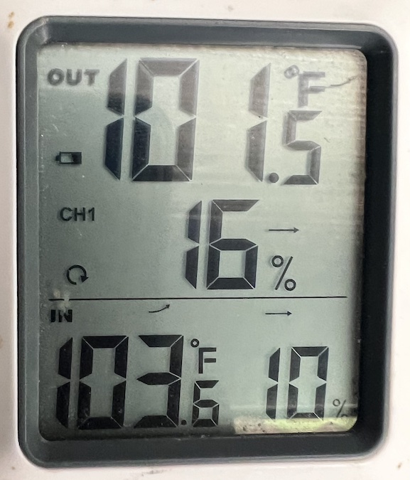 Our homes have wheels, and the absolute best way to stay cool is to start the engine and drive somewhere it’s not hot. Simply driving north doesn’t necessarily work, as we can see because I’m going through this in Montana. Higher elevations are good. The temperature drops about 3ºF for every 1,000 feet you climb, so even a 3,000-foot climb can make a big difference in comfort. I spent the hottest part of last August at 9,000 feet near Pikes Peak in Colorado, where it was rather comfortable.