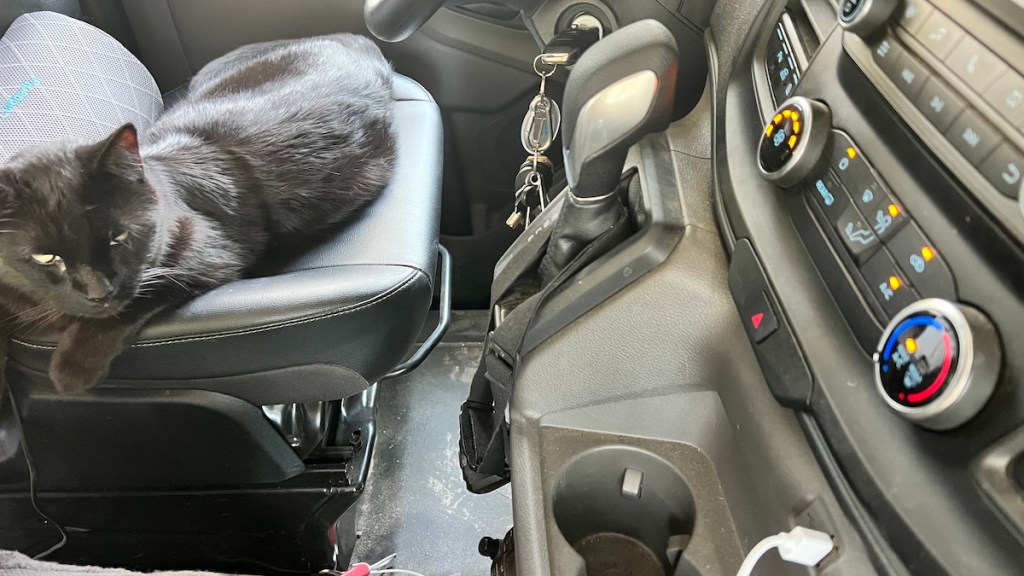 During all this, I kept a close eye on Lister as he tried to stay cool. During the hottest part of the day he started panting, and I knew he wasn’t doing too well. I closed up the van, took off his harness, and put him in front of one of my AC vents. This helped.