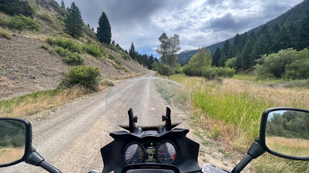 Also, the plastic tab I pull to open my modular helmet broke today. It’s locked in the closed position, and is basically a full-face helmet now. It’ll work, but I strongly prefer a modular helmet because of my glasses. With a full-face helmet, I have to take my glasses off to put it on, then go looking for my glasses on the ground after they fall off my bike from wherever I put them down and hope I don’t step on them and break them in the process. There are a couple of motorcycle shops in Butte, so I’ll check out their selection before heading to the Rocky Mtn Roll. I’d really like to have a fully functional helmet while I’m there.