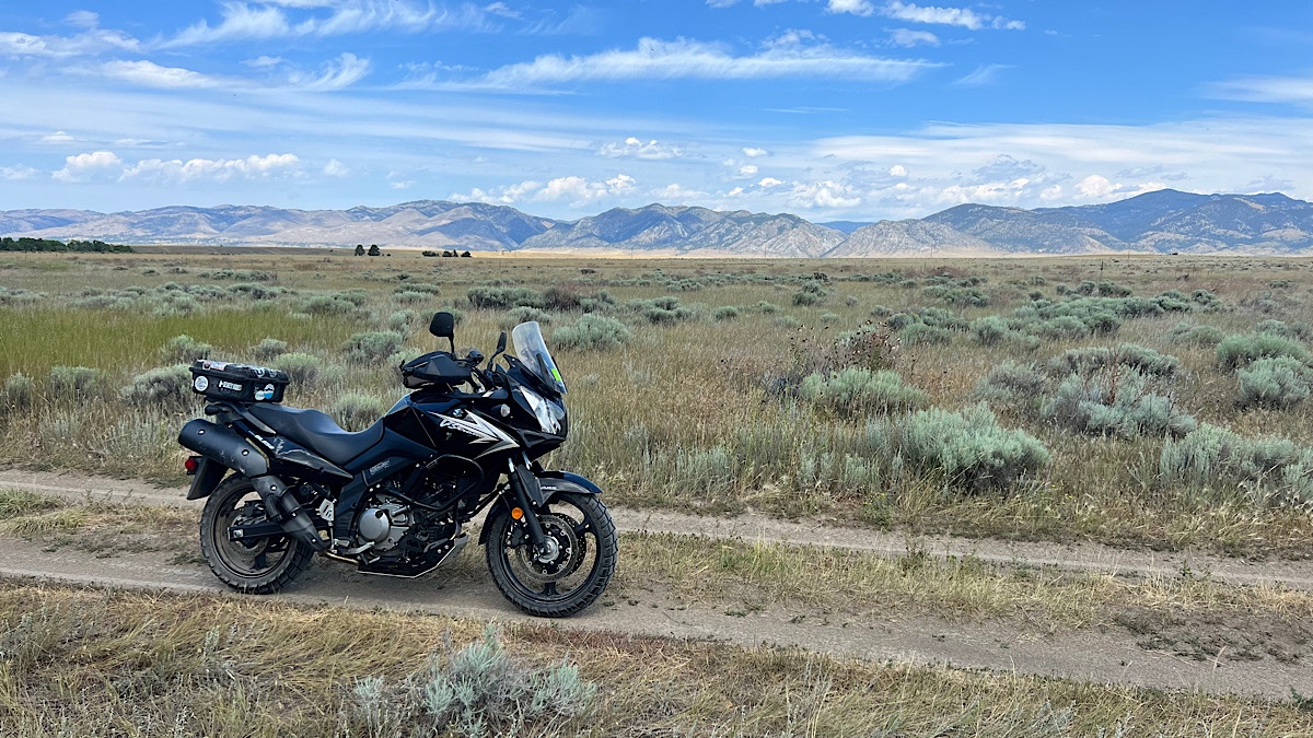Sunday I took a different kind of ride, following one of the nearby “National Forest Access” signs into White Gulch. This was an easy dirt Forest Service road back into the mountains I can see from my camp. It’s exactly the type of riding I’ve set up the V-Strom to do, and it did an excellent job of it.