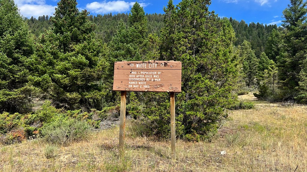 I rode all the way out to the former location of White City, a mining town that was abandoned a long time ago. Surprisingly, there are still a few modern houses out here, quite a long way from the main road, and in the middle of the Helena National Forest. I wonder if these are direct descendants of some of the original miners who staked land claims here?