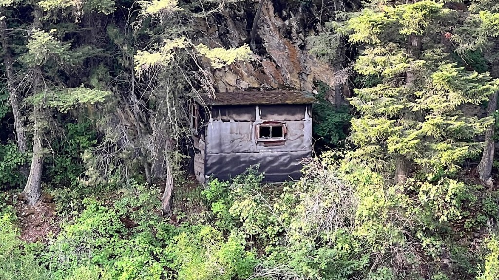 Once out there, there wasn’t much to see at all. Continuing mining operations supposedly destroyed all signs of earlier settlement out there. But then I saw this shack in the woods, nestled up against the cliff. Could this be one of the original structures?