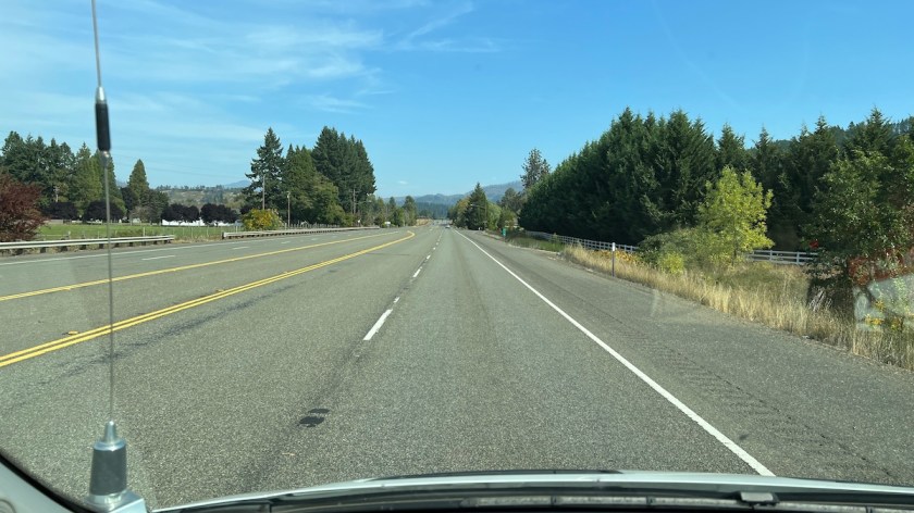 The first part of the day’s trip was I-5 south to Roseburg. I needed to stock up on groceries, and there’s a WinCo there where the prices are excellent — or so I thought. Google Maps neglected to mention that this particular WinCo is closed. So I hit a nearby In-N-Out Burger to rethink my plans and research the area while I wasn’t driving.