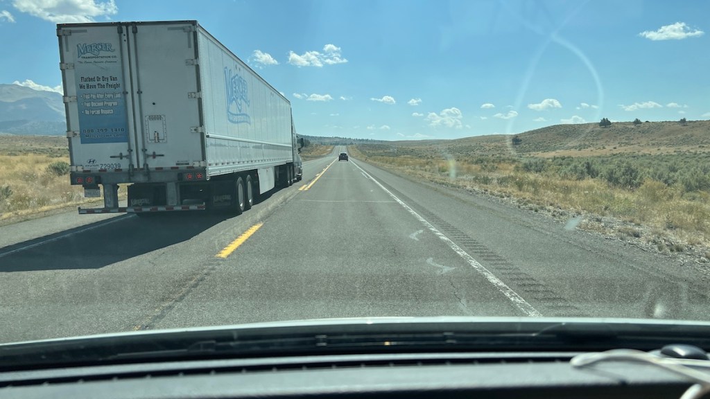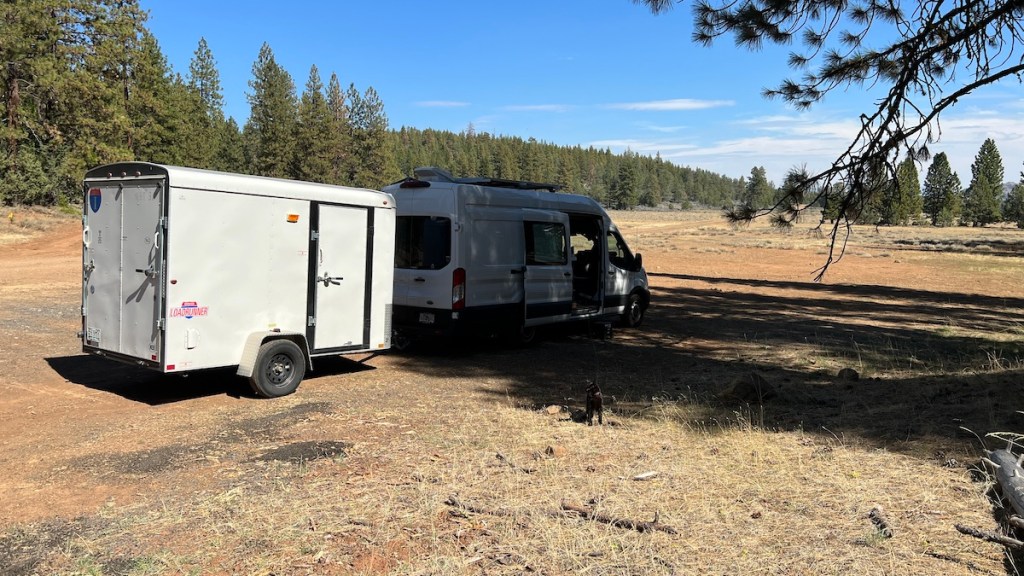 Before long, Oregon Route 39 turned into California Route 139 as I crossed the state line. Here’s where things got annoying. California has a maximum speed limit of 55 for any vehicle that’s towing, even if the limit for everyone else is higher. This isn’t a big deal on roads with two or more lanes in each direction. I can just sit in the right lane and let the whole world pass me. But on these narrow two-lane highways with a 65 mph speed limit, I quickly become a moving roadblock. Traffic stacks up behind me, and then starts taking unsafe stupid chances to pass me and resume their speed limit.