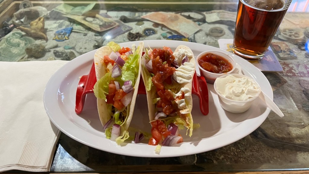 It was also Taco Tuesday with $2 tacos. These are no Taco Bell specials, but stuffed with all kinds of good stuff. They’re not the authentic Mexican tacos I prefer, but they were quite tasty, nonetheless. Plus, a $4 dinner meant I could sample the local brews I missed without breaking the bank. After all, Harvest Host guests are expected to spend some money during their stay, and a $4 dinner would’ve been cheaping out. If you choose to stay here, be aware that the sidewalks roll up extra early. The kitchen closes at 6:00 p.m. and the saloon closes at 7:00. That left the rest of the evening for Lister and me to entertain ourselves.