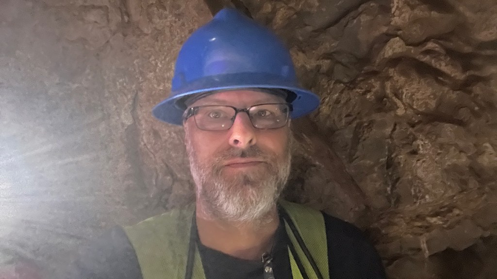 This wall is all set up and ready to blow with dynamite (not really, it’s just for demonstration). Vinnie explained how it was drilled and how the dynamite set off in just the right way to ensure maximum fragmentation for the amount of dynamite they were using. It blows my mind (pun fully intended) how they’d light the fuse, run off to a nearby area, and blow it up, risking a cave-in that they might never escape. Vinnie said that he’d “carried three people out” of the mine during his time working there.