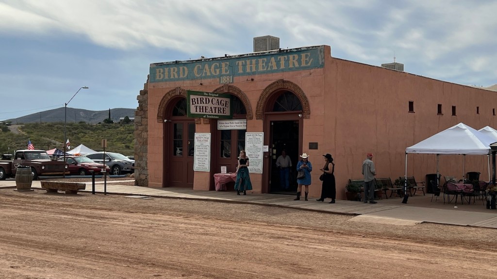 I parked across the street from the O.K. Corral (again, yes, that one), and walked a block to the historic district. This is fun even on an ordinary day, but this weekend was Helldorado Days, where Tombstone goes all out at turning the historic district into a full re-enactment, gunfights and all. The road was closed to traffic and covered with dirt to recreate its old west look. However, as early in the morning as it was, the festivities hadn’t kicked off yet. Most places were closed, and re-enactors were still arriving in full costume. It was surreal to exchange a friendly “Howdy” with a sheriff as we passed on the sidewalk. I did get to see a rehearsal of events leading up to one of the afternoon’s gunfights, which was fun. I had to remember that their poor treatment of the black messenger was just part of the show, historically accurate but not for real. It didn’t reach anywhere near the level of Blazing Saddles.