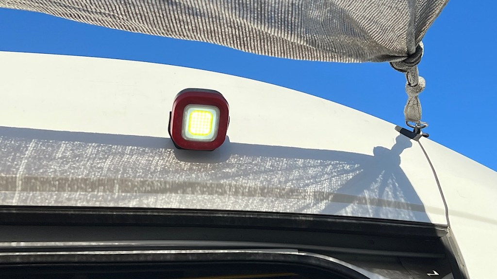 I also picked up a cheap magnetic work light. I haven’t installed any scene lights like I did in my last van, nor do I want to because they were way too bright and annoying to my neighbors. At Wayne’s, I saw Yellow Wolf did something like this, and liked the idea so much I got a light of my own. I can just stick it to the side of the van when I’m parked and have an outside light, without having to go inside the trailer and turn on the BougeRV power station before turning on its outside light. I can just reach up and press a button, with no wiring at all. When it runs out of juice, I can recharge it by USB. I just have to remember to take it down when I’m going to drive, or if it’s going to rain.