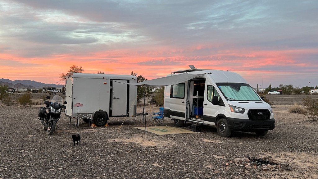 Some of the paperwork I’d collected and printed at the Quartzsite library was to transfer my van’s registration from Florida to Arizona, where I’m a legal resident. My Florida registration doesn’t run out until the end of December, but I’ve been paying twice as much for car insurance out of Florida as my full-coverage RV insurance costs me in Arizona, so the sooner I switched, the more I could save. So off to the Arizona DOT office in Parker, I went.