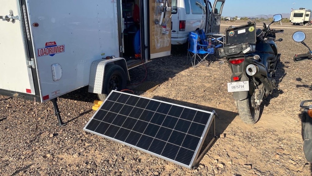 I should’ve just gotten the 200-watt panel to begin with. It worked perfectly last year. This actual panel continues to work now on the roof of Smokey II. I got greedy for the extra 50 watts, and a Black Friday sale that made the 250-watt panel the same price as the 200-watt panel’s normal price. Oh well — hindsight is 20/20 and all that. The 200-watt panel will arrive in a few days. I’ll install the stand on it, just like I did on the old panel, and my charging problems should be solved. As a bonus, it will serve as a spare for my rooftop panels. It’s exactly the same type, so I can mix and match them at will. If one of my rooftop panels ever gets smashed, I can replace it with this one, then replace the portable panel whenever it’s convenient. I don’t expect my rooftop panels to fail or get smashed, but having a direct replacement anyway doesn’t hurt.