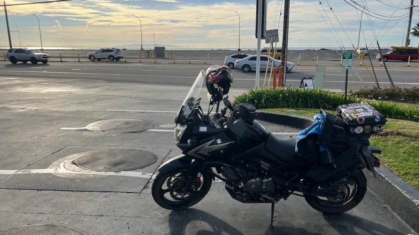 It’s become Christmas tradition for me to take a motorcycle ride, mainly because I can in the places where I spend this time of year, unlike New England where I lived most of my life. Carolyn expressed interest in the idea, so we decided to go together, the first time we’d ridden together in two years. We took the freeways across to west Los Angeles, with a front row seat to CHP blocking traffic and clearing a disabled car off the road. We hopped off the 405 onto Sunset Boulevard and took it all the way to the coast. It wasn’t canyon carving, but a relaxing cruise, which was exactly what I was looking for. It was still quite curvy, which kept it fun.